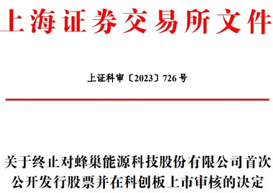 2022年11月18日,上海证券交易所接受了申请文件,用于蜂窝能源股票的首次公开提议,并根据法律列出了科学技术创新委员会,并根据法规对其进行了审查。最近,上海证券交易所的Honeycomb Energy及其赞助商Citic Securities Co,Ltd。Security [2023] No. 1987),该公司适用于删除申请文件。根据“上海证券交易所发行和上市审查规则”第63条的相关规定,上海证券交易所终止了对Honeycomb Energy Shartes的首次公开发行的审查及其S的首次公开发行CIENCE和技术创新委员会。