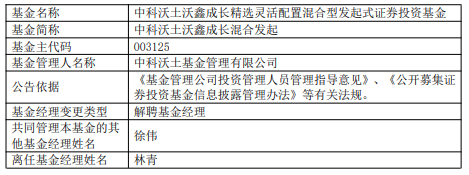 林清辞职,中科沃托沃鑫成长有限公司由徐伟创办并管理